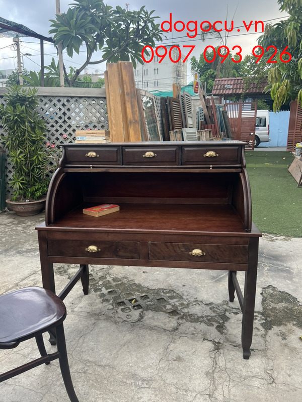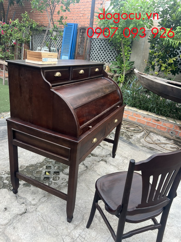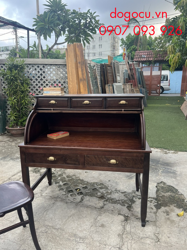 Điểm nổi bật trong thiết kế của chiếc bàn là phần nắp cuộn lên xuống giống như một cây đàn piano cổ điển. Thiết kế này không chỉ mang lại vẻ đẹp sang trọng mà còn tăng tính tiện dụng cho sản phẩm. Khi không sử dụng, bạn có thể dễ dàng cuộn nắp xuống để biến chiếc bàn thành một khối hộp kín đáo, giúp bảo vệ mặt bàn và các vật dụng cá nhân bên trong. Đây chính là nét đặc trưng của phong cách cổ điển, vừa tiện lợi lại vừa tăng tính thẩm mỹ.