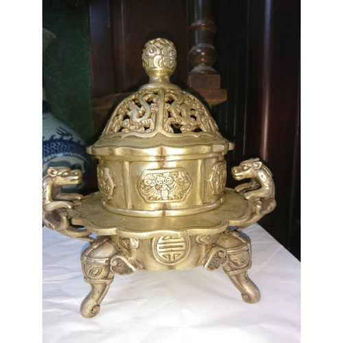 Mẫu lư hương này được làm hoàn toàn từ đồng nguyên chất, đúc thủ công rất sắc sảo và tinh tế, hoa văn cầu kỳ và mang vẻ đẹp cổ điển nên vừa thõa mãn được phần nhìn lại đáp ứng được về nhu cầu sử dụng, không lo bị vỡ hay ảnh hưởng từ nhiệt độ, môi trường bên ngoài. Sản phẩm được Lâm Hải Quảng phục chế về màu sắc nên vẫn sáng đẹp như mới.
