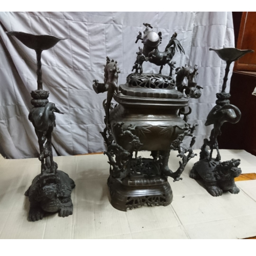 | Bộ lư mắt tre gồm | 1 đỉnh đồng giữa, 2 chân đèn |